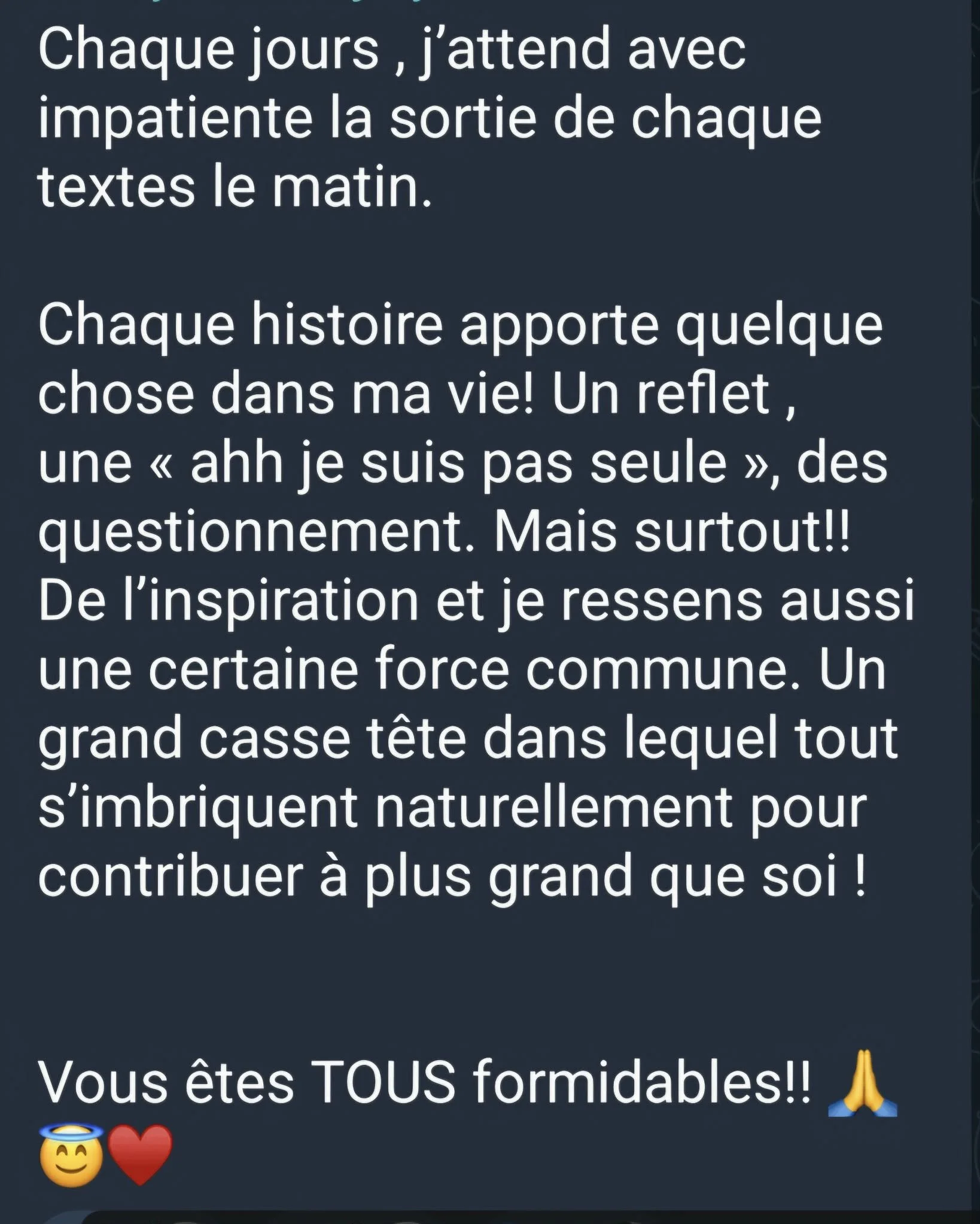 Chaque jour, c’est une circulation d’énergie humaine et vraie qui s’est faite.